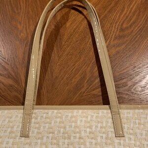 Jessica Simpson Tan Wolven Tote EUC With Inside Pocket Snap Closure L18 Tall 10.5 W 4 Inches