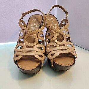 Jessica Simpson Tan Wooden Platform Stilettos Size 8
