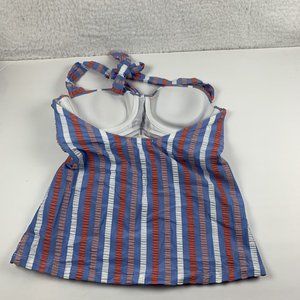 Jessica Simpson Tankini Top Women's Size Small Blue Miami Striped Nylon 6209