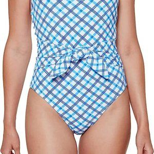 Jessica Simpson Tea Check Tie Waist Swimsuit
