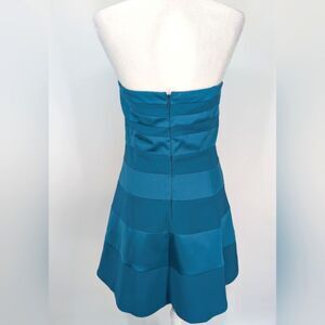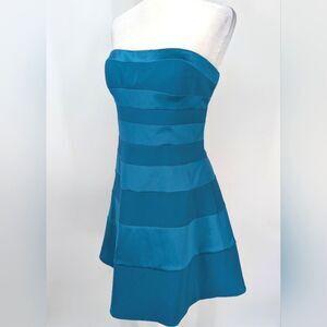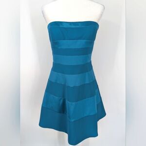 Jessica Simpson Teal Blue Striped Strapless A-Line Cocktail Party Dress 14 NWT