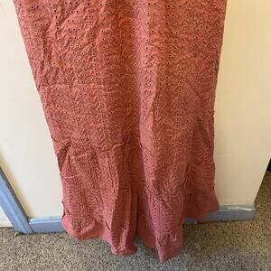 Jessica Simpson Tiered Coral Floral Eyelet Smocked Lined Maxi Dress XL Beach