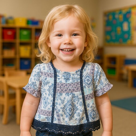 Jessica Simpson Top Crocheted Edging Mixed Print Blue White 3T