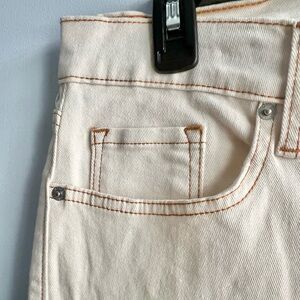 Zipper with front button closure; belt loops
