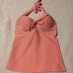 Jessica Simpson Twiggy Stripe underwire halter tankini top in Melon