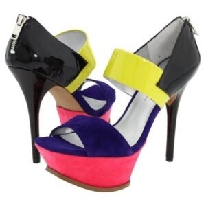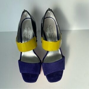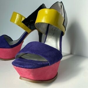 Jessica Simpson Vadio Suede & Patent Color Block Platform Heel Sandals 8.5