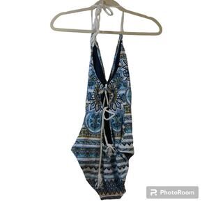 Jessica Simpson Versailles One Piece Blue Printed Swim Suit Size M