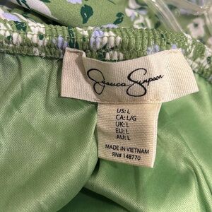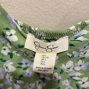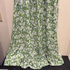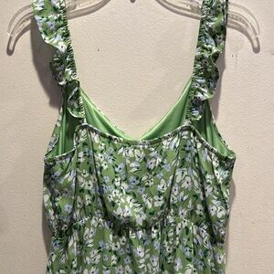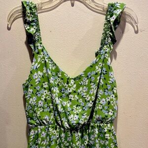 This charming dress features a lively green floral design, perfect for fun-filled adventures.