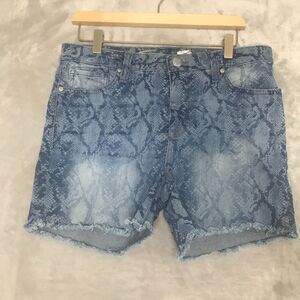 Jessica Simpson Weekend Short Womens 10 Python Indigo Cotton Stretch Raw Hem