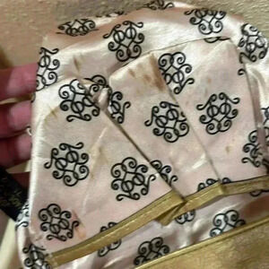This purse has zipper flap compartment that snaps to main compartment. Inside zipper pocket and numerous other pockets, notice stains on inside as pictured two leather tassels. Preowned approximately 8 inches deep and 9 inches across.