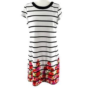 Jessica Simpson White Black Stripes Pink Floral Short Sleeve Shift Dress Plus 14