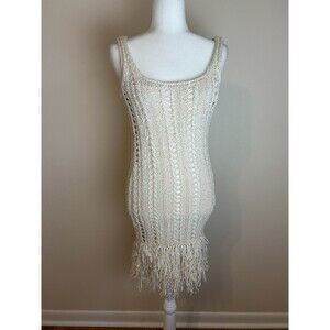 Jessica Simpson White Eyelet Crochet Mini Dress Size Small S Mini Fringe Western