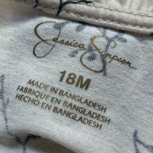 Adorable Jessica Simpson white floral jumpsuit romper for babies size 18 months. Features a sweet floral print, lightweight fabric, and an easy, breezy fit—perfect for playtime or outings. Please note: this romper has some play wear at the knees—see pictures for details. Gently used and full of life, it's a stylish and comfy addition to your little one’s wardrobe!