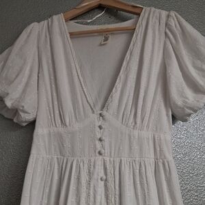 Jessica Simpson White Midi Dress With Puffed Sleeves. Size S