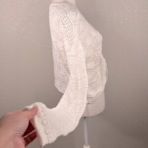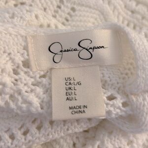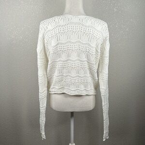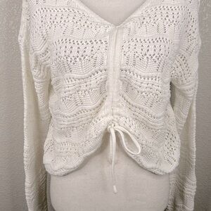Jessica Simpson White Open Knit V-Neck Long Sleeve Front Tie Sweater Size Large