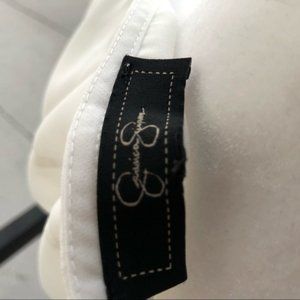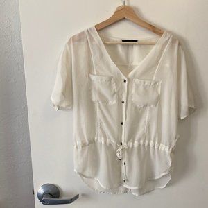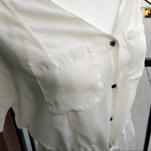 Jessica Simpson White Sheer Blouse Size Small, V neck button down romantic blouse with elastic tie waist EUC