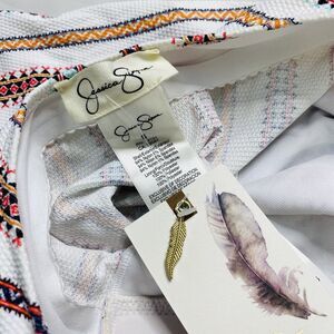 Jessica Simpson White Striped Texture Underwire Halter Tankini Top Blue Orange S