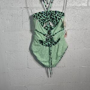 Jessica Simpson Wild Thing Ruched Keyhole Front 1Piece Swimsuit, Leopard Medium