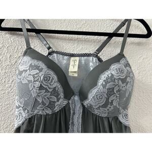 Jessica Simpson Womans Size M Grey Sexy Baby Doll Uunderwire Push-up Negligee