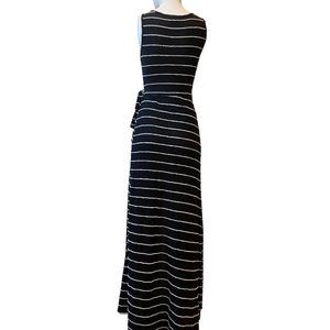 Jessica Simpson Women Striped Wrap Maxi Dress Embroidery Tie Waist Black White L