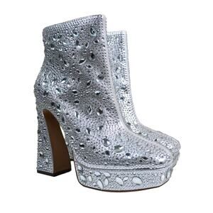 Jessica Simpson Womens 9.5 Dollyi Crystal Embellished Bootie Silver NEW