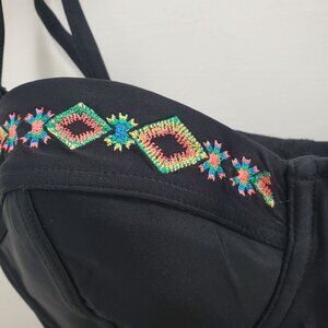 Jessica Simpson Women's Black Neon Southwest Embroidered Underwire Bra Top M