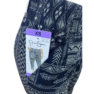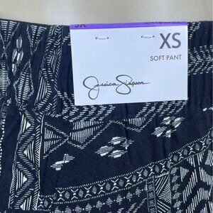 Jessica Simpson Women’s Black Soft Pants XS Pattern Elastic Waist Comfortable. Made in China, these soft pants feature an all-over geometric pattern. Stylish and cozy, designed with a comfortable elastic waistband and cropped leg. Perfect for versatile casual or lounge wear. Fabric ensures a soft and breathable fit.