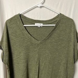 Jessica Simpson Women's Boxy Cuffed Sleeve Green V-Neck Top Size Large