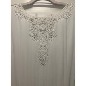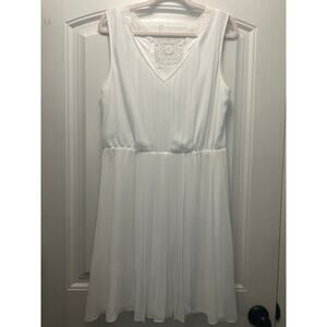 Jessica Simpson Women’s Coquette Lace Crochet Pleated Mini Dress Size 14 White