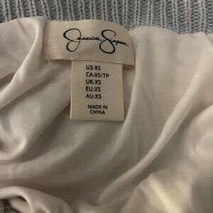 Crochet maxi skirt embraces a delicate charm with its intricate striped pattern and soft texture. Crafted from cotton with a polyester lining, it features a comfortable drawstring waist, ensuring both style and function. The Jessica Simpson brand ensures a blend of modern design and casual elegance. Size XS. Made in China.
