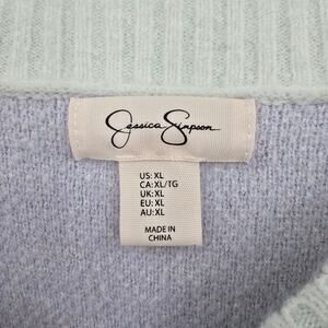 Jessica Simpson Women's Cropped Checkered Wide Sleeve Sweater Blue Size XL