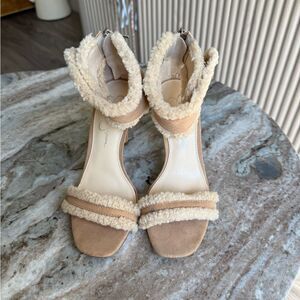 Jessica Simpson Women's Cylia Fleece Trimmed Heeled Sherpa heels Sandals 7.5