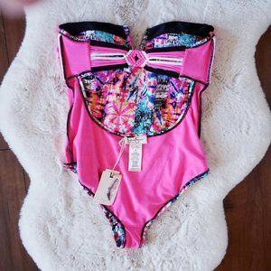 Jessica Simpson Women's Firework V-Wire Bandeau One-Piece Swimsuit Size Medium