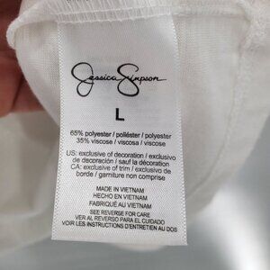 Jessica Simpson Womens Floral Bell Sleeve Boho Top Blouse Size Large L White "Keep Your Wonder Lust Forever" Graphic