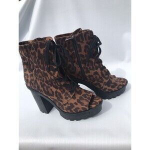 Jessica Simpson Women's Lizzah Animal Print Faux Suede Open Toe Bootie Size 10m