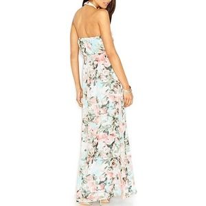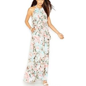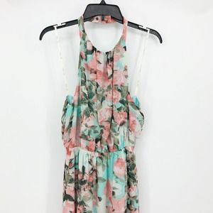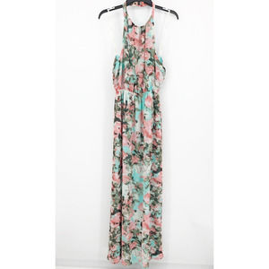 Jessica Simpson Women's Maxi Dress 10 Blue Pink Floral Print Halter Sleeveless
