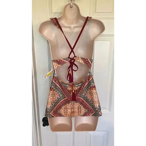 Jessica Simpson Women’s Medium Paisley Brown Swimwear tankini top Stretch NWT