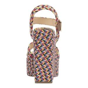 These vibrant woven multicolor platform sandals by Jessica Simpson feature an ankle strap for a bold and stylish design. Perfect for adding a pop of color to any outfit!