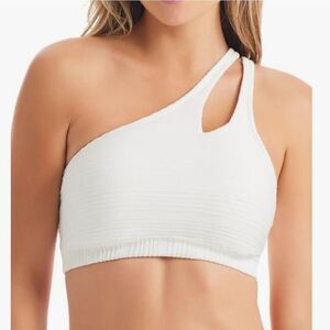 Jessica Simpson Womens One-Shoulder Slash Bikini Swim Top White Cut Out S New