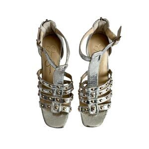 Jessica Simpson Womens Oprina Silver Metallic Studded High Heel Sandals Size 7.5
