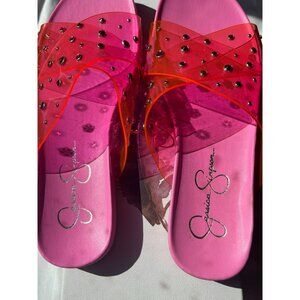 Jessica Simpson Womens Pink Slide Sandals Rhinestone Studded