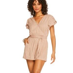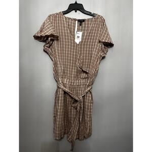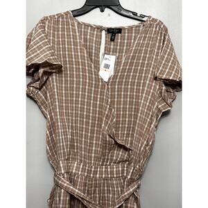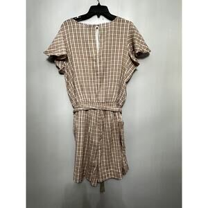 Jessica Simpson Women's Plus Ilona Romper Brown/white Gingham Pockets 2X NWT Belted