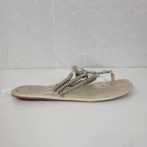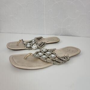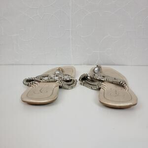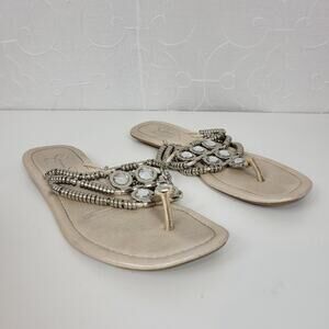 Jessica Simpson Women's Sandals 6.5 Silver Rhinestone Gladiator Roman Flip Flop