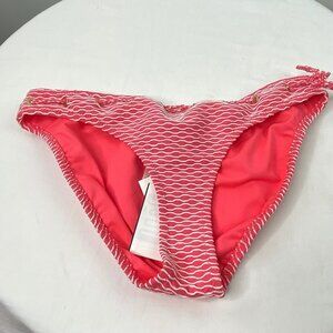Jessica Simpson Women's Striped Hipster Melon Pink Bikini Swim Bottoms Size L