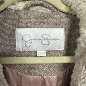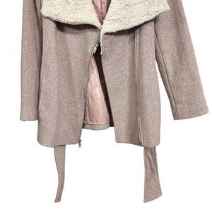 Jessica Simpson Womens Sz S Blush Pink Faux Fur Collar Coat Wool Blend Belted