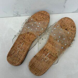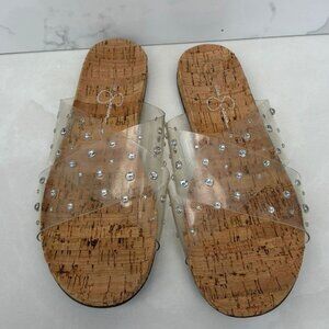 Jessica Simpson Womens Teslie Embellished Slip On Sandals Clear Size 8 to 8.5