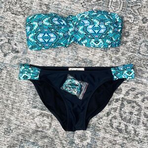 Jessica Simpson Womens Tie Back Bandeau 2-Piece Swimsuit Multicolor Medium