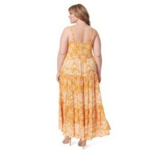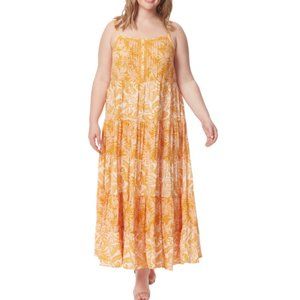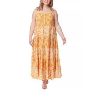 Breezy and beautiful, this plus size maxi dress from Jessica Simpson hits all the right style notes with its pretty print, shirred waistline and tiered skirt.