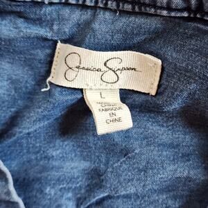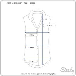 This Jessica Simpson Women's Tunic Top in size L is a stylish and versatile addition to any wardrobe. This sleeveless chambray top features a cuffed arm, high-low hem, collared neckline with a tie closure, and a half lace-up front for added flair. Made from comfortable lyocell material, this top is perfect for casual occasions and can be worn across all seasons. The regular fit and solid blue color make it a classic and chic choice for any woman looking to elevate her style with a fashionable tunic top. Good condition.
