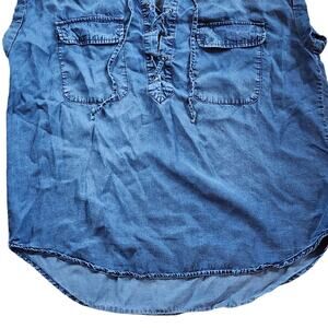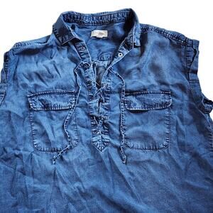 Jessica Simpson Womens Tunic Top Size L Blue Chambray Sleeveless Cuffed High-Low